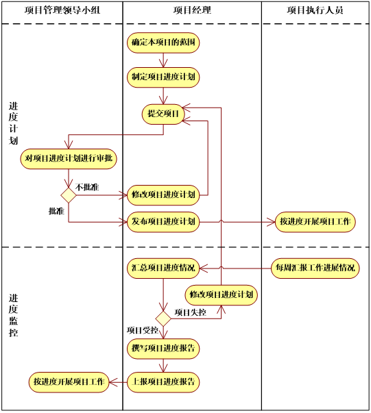項目進度計劃由項目管理小組提交給項目領(lǐng)導(dǎo)小組審批。
